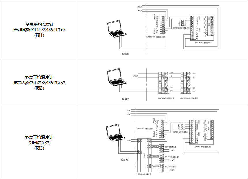 GKYWG-60W多點平均溫度計采用多點測溫原理,測量化工儲罐不同高度點的多個溫度值,實現(xiàn)液面上溫度、液面下溫度、平均溫度等值通過RS485 MODBUS協(xié)議或RTU方式進(jìn)控制室PLC或DCS系統(tǒng),實現(xiàn)多溫度參數(shù)監(jiān)測控制儲罐設(shè)備溫度,可以與伺服液位計、雷達(dá)液位計連接遠(yuǎn)傳至控制室系統(tǒng)。