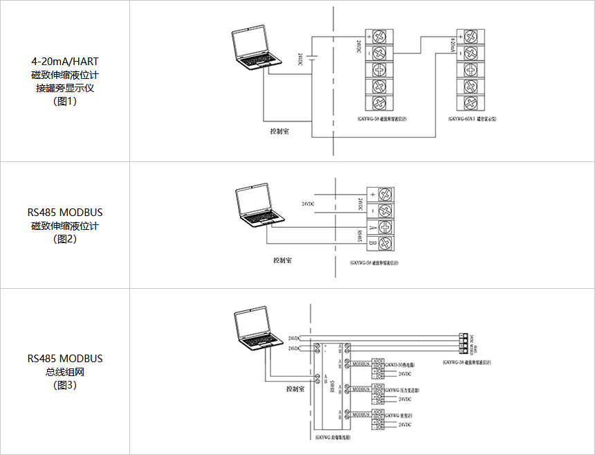 輸出信號(hào)4~20mA/HART、RS485 MODBUS可選,可現(xiàn)場指示或遠(yuǎn)程進(jìn)入PLC或DCS系統(tǒng)